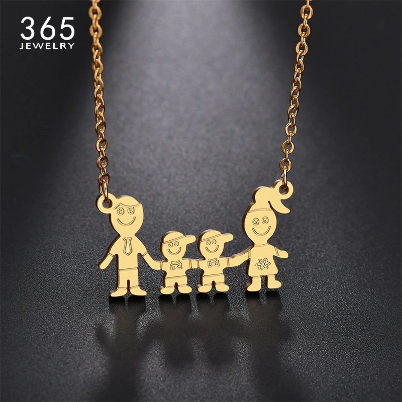 Charm Jewelry Family Love Stainless Steel Pendant Necklace Gold Color Mom Dad Parents Boys Necklace Children Gift Pendant Necklaces Aliexpress